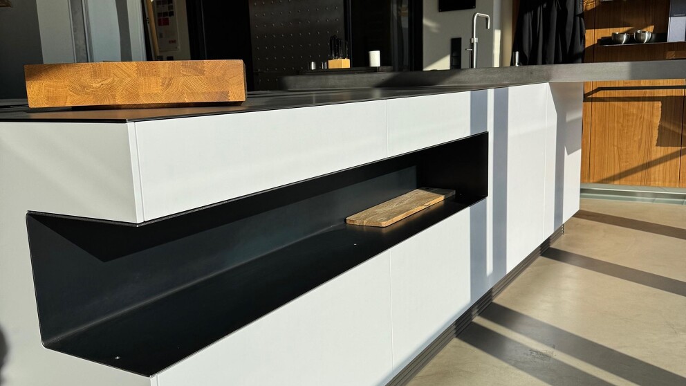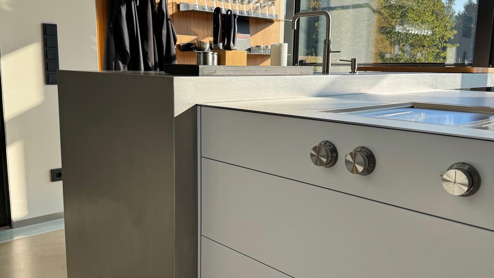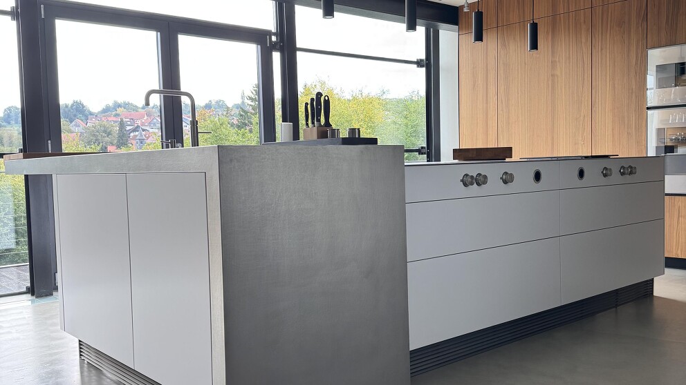 50.000,00 EUR statt 106.400,00 EUR (Ehemaliger eigener Verkaufspreis)Puristischer Küchenblock mit Edelstahl Arbeitsplatte