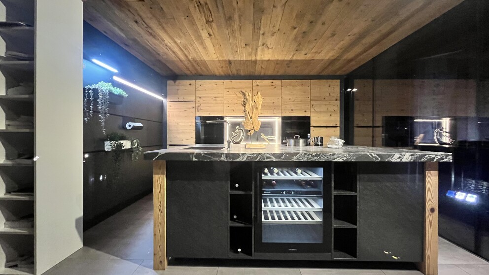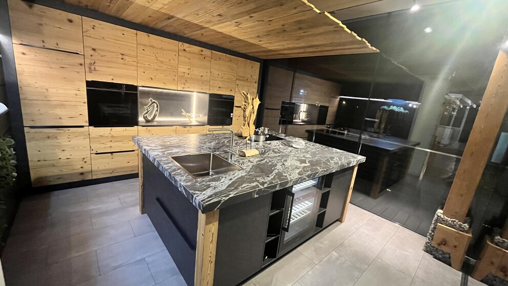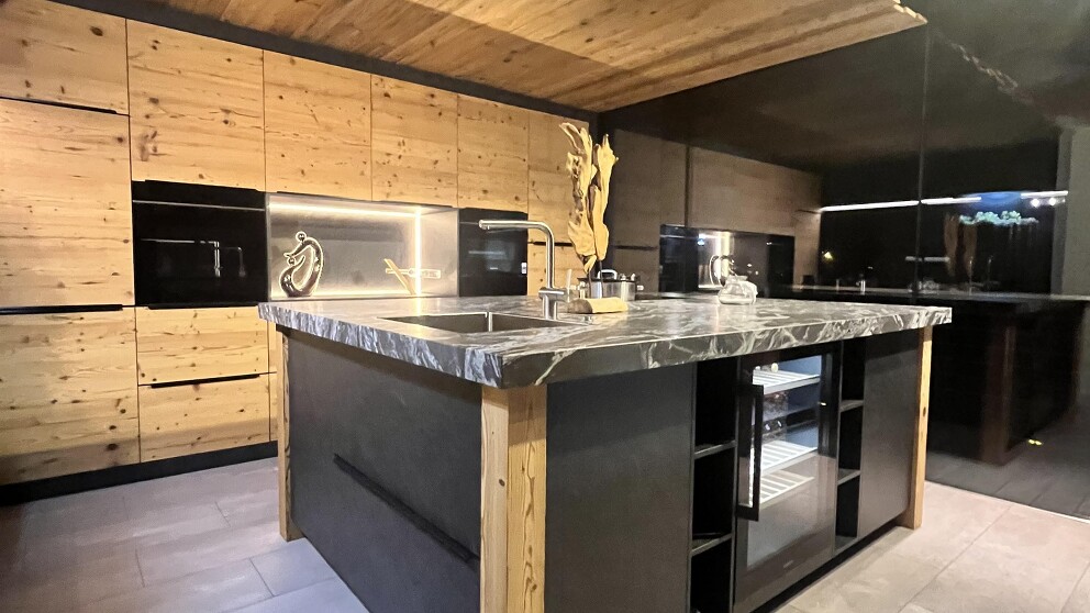 Besonders hervorzuheben sind die Fronten aus eigenem Altholz, die jedem Raum